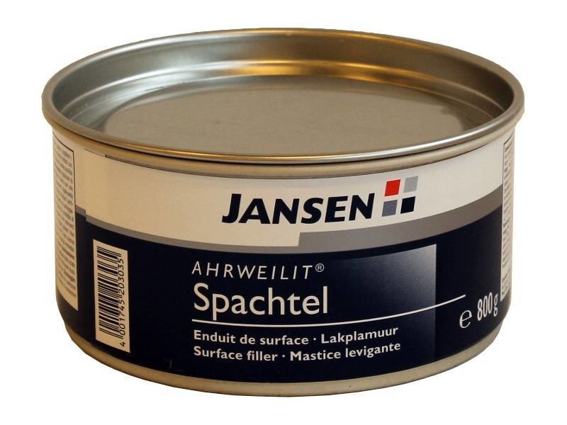 Jansen Spachtel is een lakplamuur om eenvoudig grote oppervlakten mee te plamuren. Het geeft een mooie gladde afwerking waardoor schuren niet meer nodig is. Feinspachtel heeft een zeer hoge laagdikte (800 mu) en je kan meerdere lagen op een dag aanbrengen.