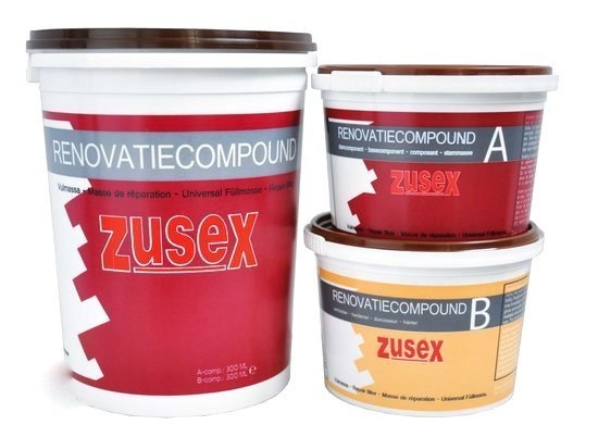 Zusex Renovatiecompound is een goed modelleerbare, elastische, krimpvrije, oplosmiddelvrije en universeel overschilderbare houtreparatiemiddel tevens toepasbaar voor het vullen van naden en gaten in beton, kunststof en staal.