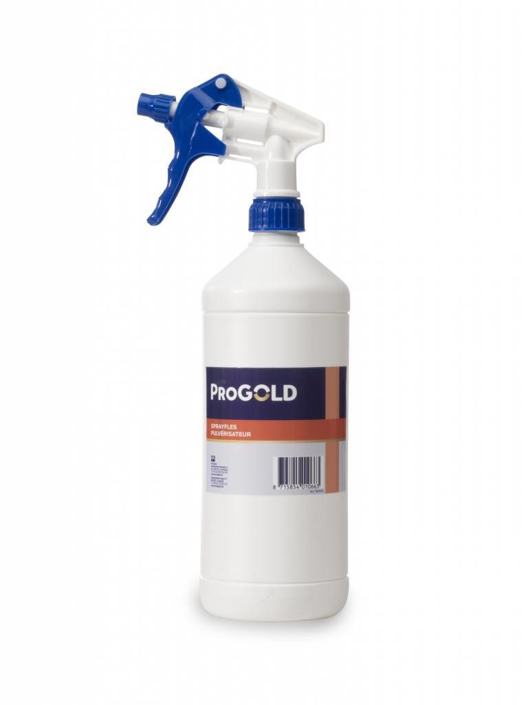 De ProGold Sprayfles Leeg is een lege sprayfles met een inhoud van 1 liter, voor het verdund verwerken van de ProGold Finisher en de ProGold Allesreiniger.