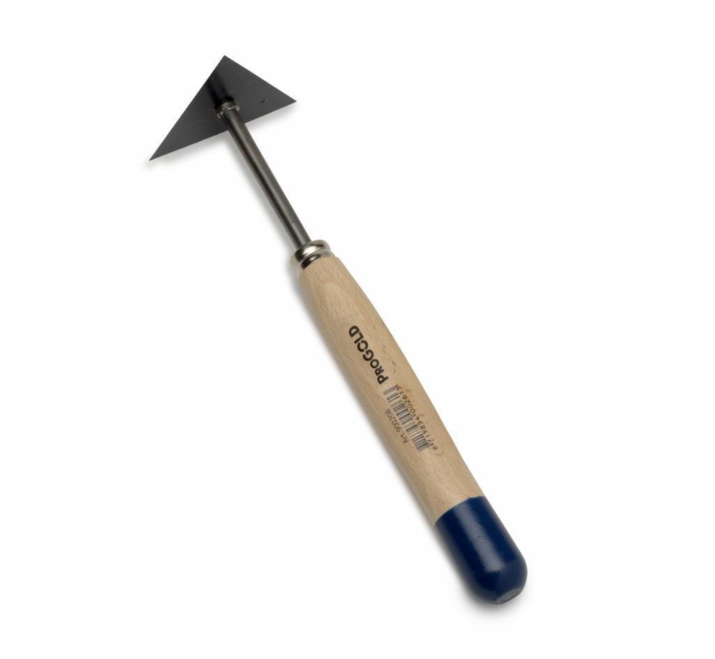 De ProGold Verfkrabber Driehoek is een verfkrabber met houte handvat en speciaal blauw gehard metaal. Voor het verwijderen en afsteken van meestal oude verfresten. Te verkrijgen in verschillende modellen.